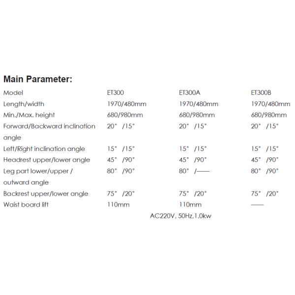 backrest, flat board flexibly. Mattress is high temperature resistant, erosion resistant, and easy to clean. ·Highly automatic with low noise. Key parts are imported. It's a reliable, ideal electric operating table.